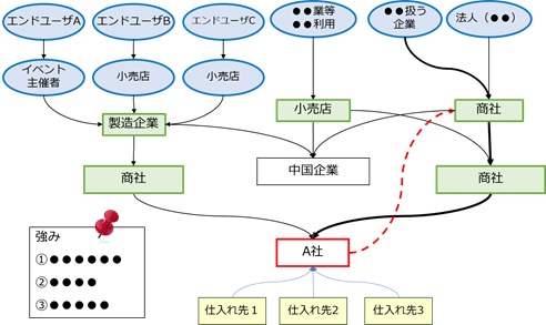 ■商流分析を用いて内部分析を行い、競合に対して差別化できる自社の強みを明確にしていきます。