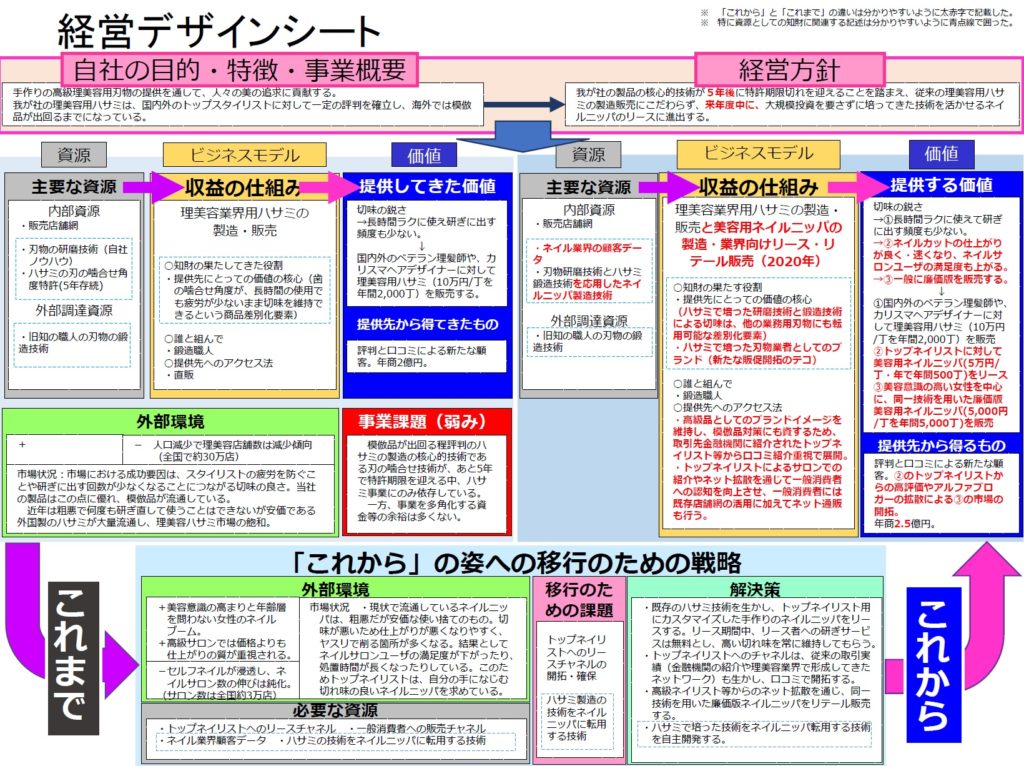 ■新事業のビジネスモデルを実現するために、経営デザインシートを用いて新事業の経営戦略を明確していきます。